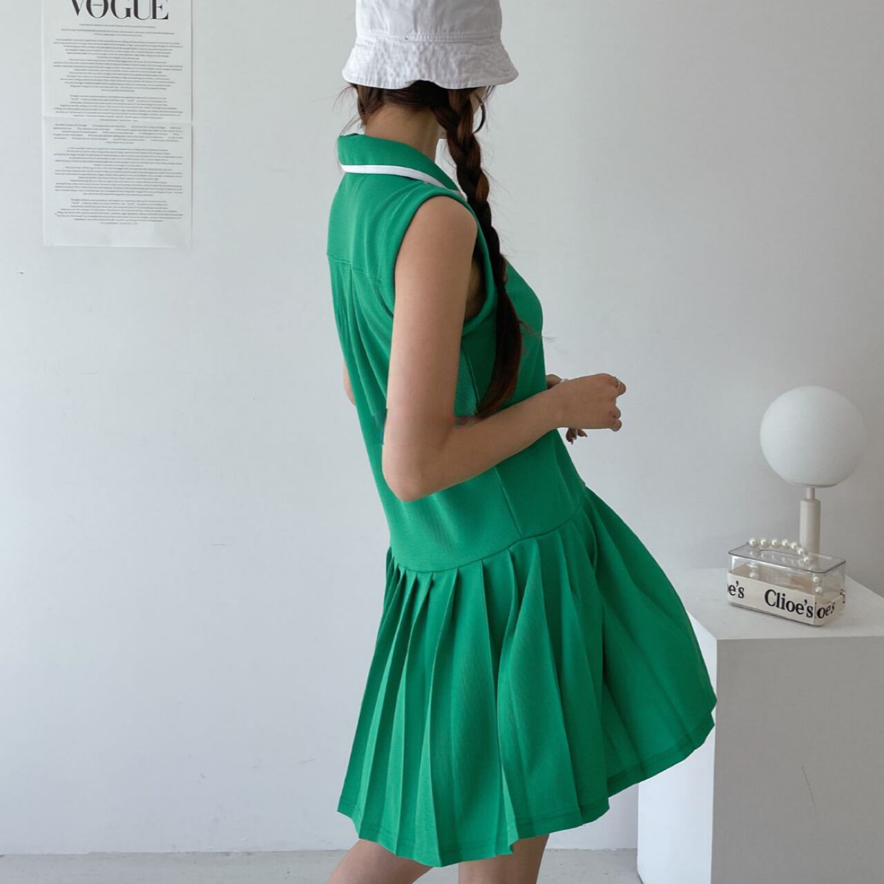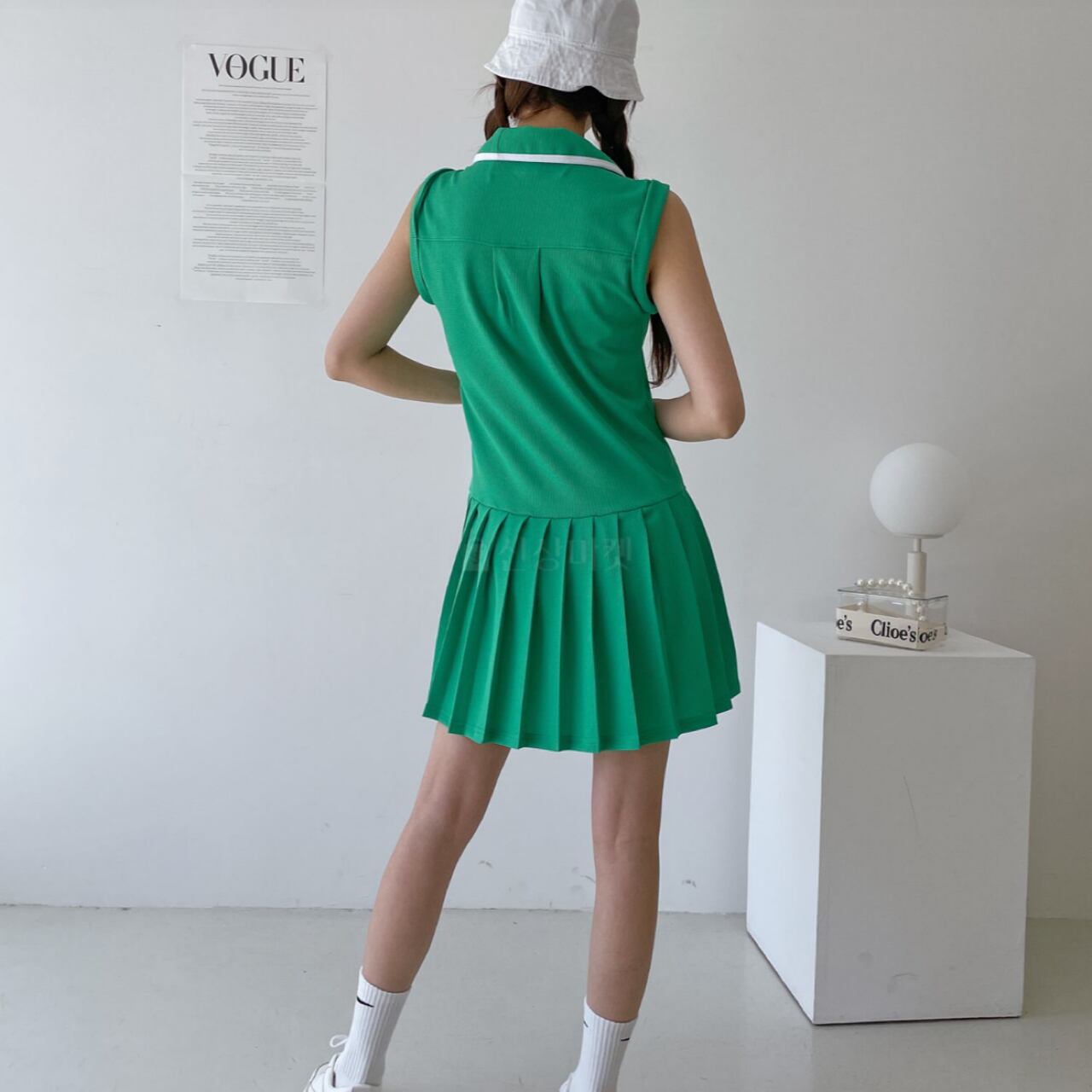 軽快な動きが求められるゴルフウェアには、このプリーツワンピースがぴったり。