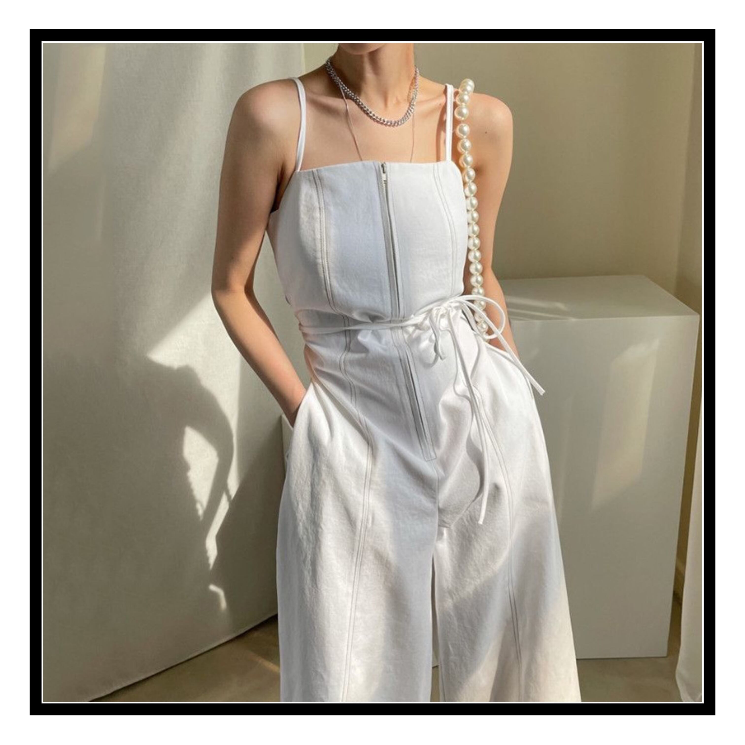 (ウエストと胸元はすべて伸縮性があり、長さにはショルダーストラップは含まれていません)