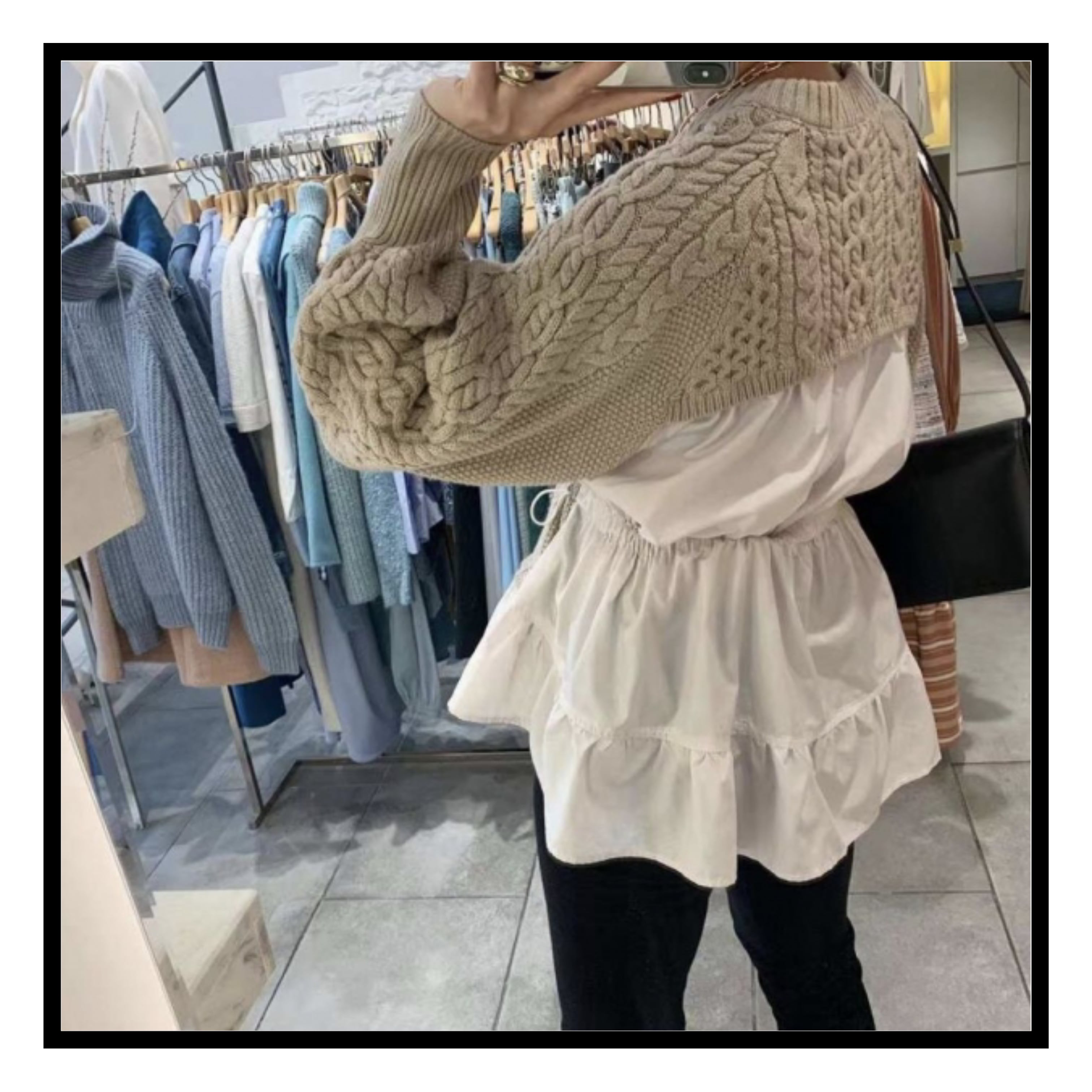 ケーブルレイヤードニット