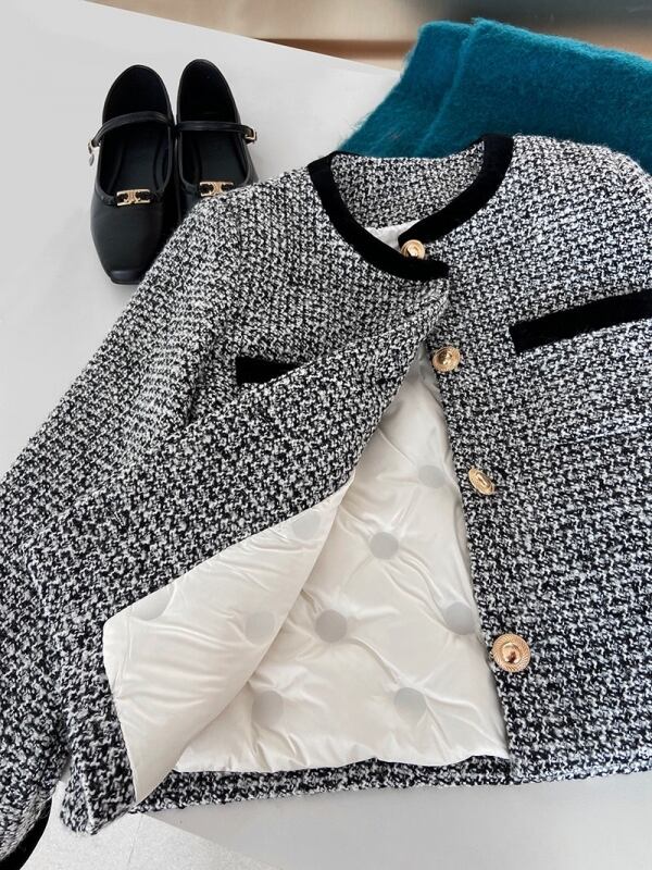 洗練されたスタイルと暖かさを兼ね備えたツイードダウンジャケットが登場しました!ツイード素材のエレガントさと、中に詰まったダウンが提供する暖かさは、この秋冬のおしゃれなコーディネートに欠かせません。 ツイード生地の風合いと柔らかな着心地は、一見するだけでその高級感を感じさせます。心地よい肌触りと共に提供する保温性は、寒い季節にも活躍します。